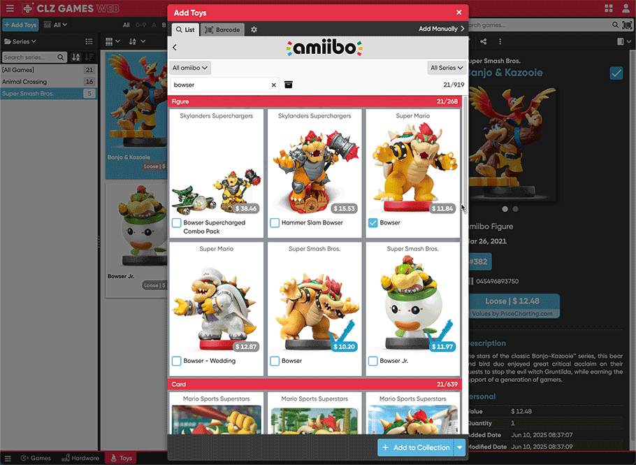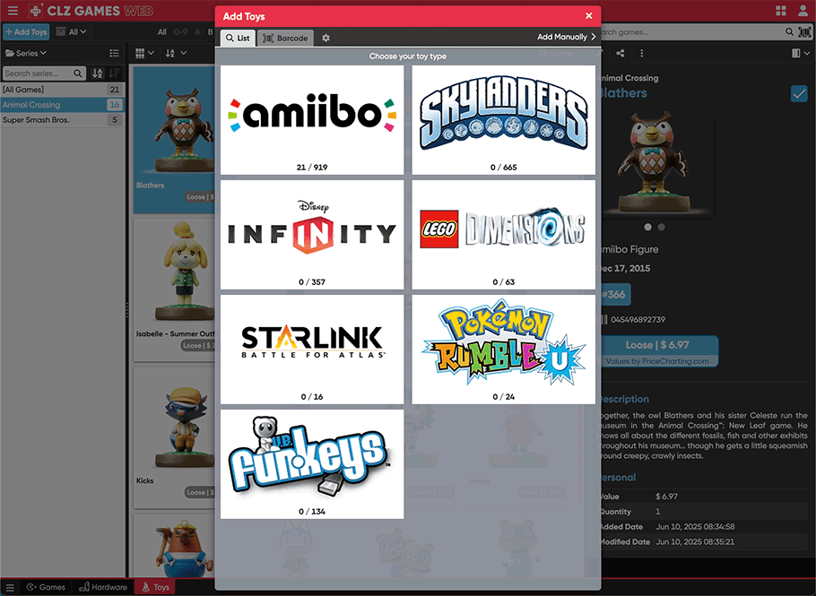 Do you have amiibo? Skylanders? Other? Good news: you can use CLZ Games to catalog your Toys-to-Life figures! CLZ Games comes with full support for cataloging: